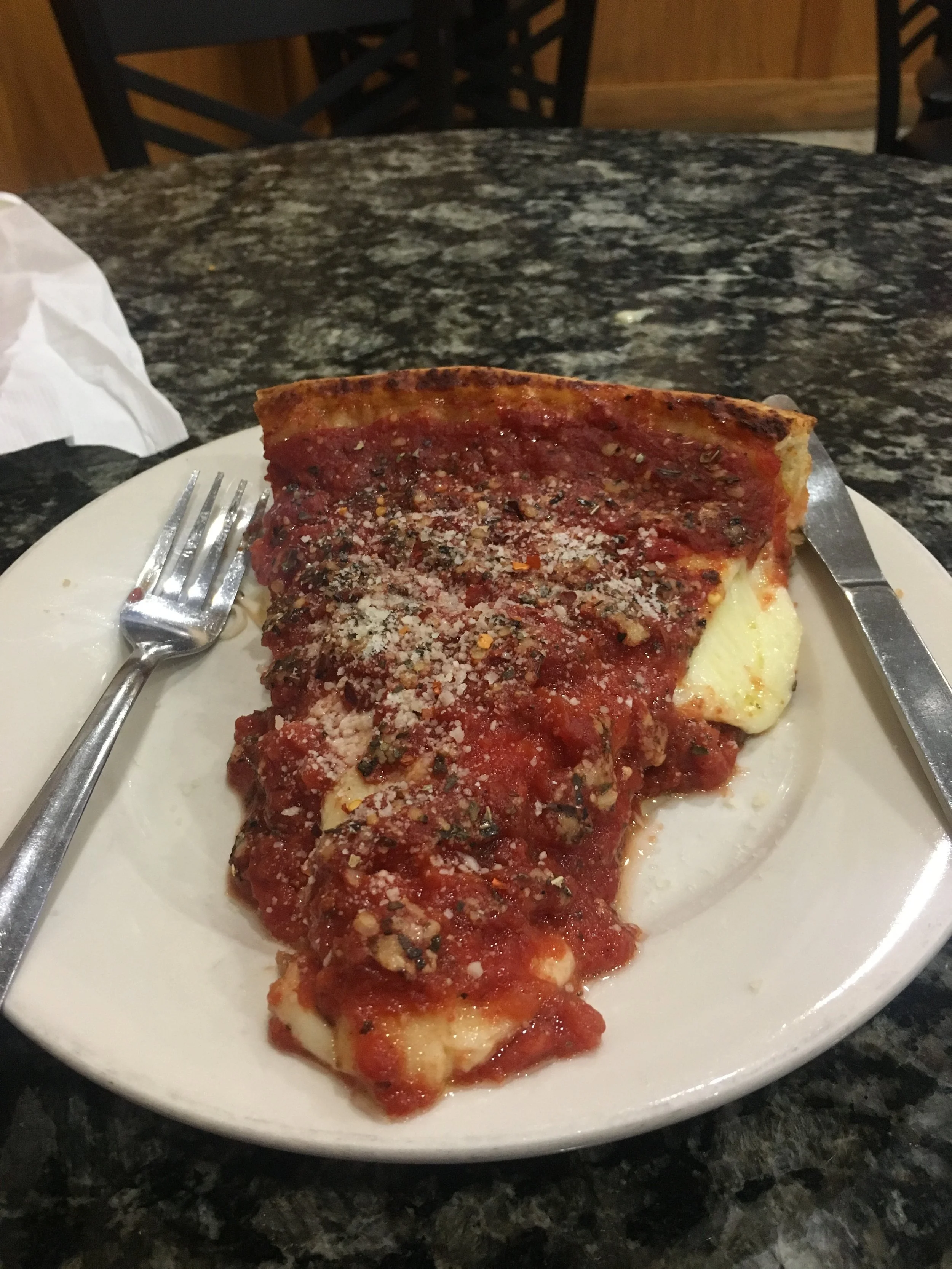Stuffed deep dish pizza from The Art of Pizza in Chitown.